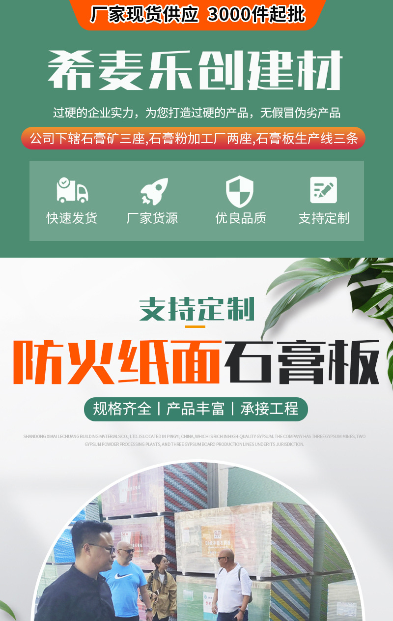 防火纸面石膏板 现货吊顶材料 家装建材工程防火吊顶石膏板