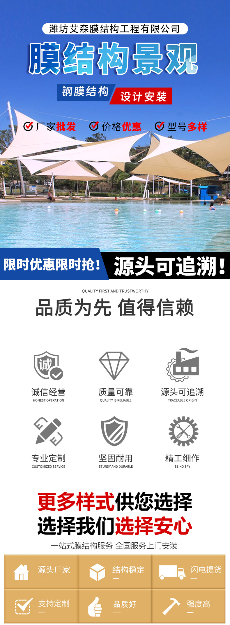 平台首页 > 隧道工程 > 承接各地膜结构工程遮阳棚顶棚户外休息小公园景观伞简易 安装运输